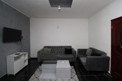 salon meublé de canapés ergonomiques-d’une télévision, d’une table basse-studio meublé à douala à bonapriso